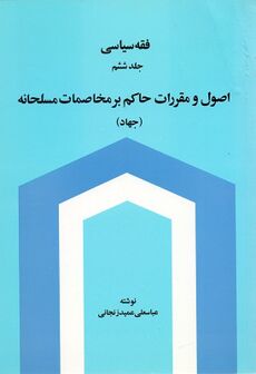 "Principles and Regulations Governing Armed Conflicts (Jihad)" (in persian:اصول و مقررات حاكم بر مخاصمات مسلحانه (جهاد)) is the sixth volume of the ten-volume series "Political Jurisprudence," written by Abbas Ali Amid Zanjani. This volume builds upon and completes the discussions initiated in the fifth volume. The author explores the principles and regulations of warfare in Islam, the impacts of war, and issues arising after conflict, structured into three main sections and ten chapters. Amid Zanjani asserts that one should adhere to the minimum requirements and necessities in the context of jihad. He emphasizes the use of propaganda to strengthen one's own spirit and deceiving the enemy, and even suggests the potential use of instruments of entertainment. Furthermore, he clarifies that the budget and expenditures related to those whose hearts are to be reconciled are not exclusively designated for zakat and jihad, and he deems the establishment of an intelligence organization to be essential. Amid Zanjani also believes that the ruling jurist (Wali Faqih), as the Commander-in-Chief of the armed forces, is safeguarded from error. The book includes sections that address the legitimacy of the captivity and enslavement of prisoners of war in Islamic jurisprudence, how to handle war spoils, the ban on weapons of mass destruction and nuclear weapons, and the accountability of governments for war crimes.